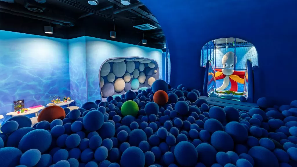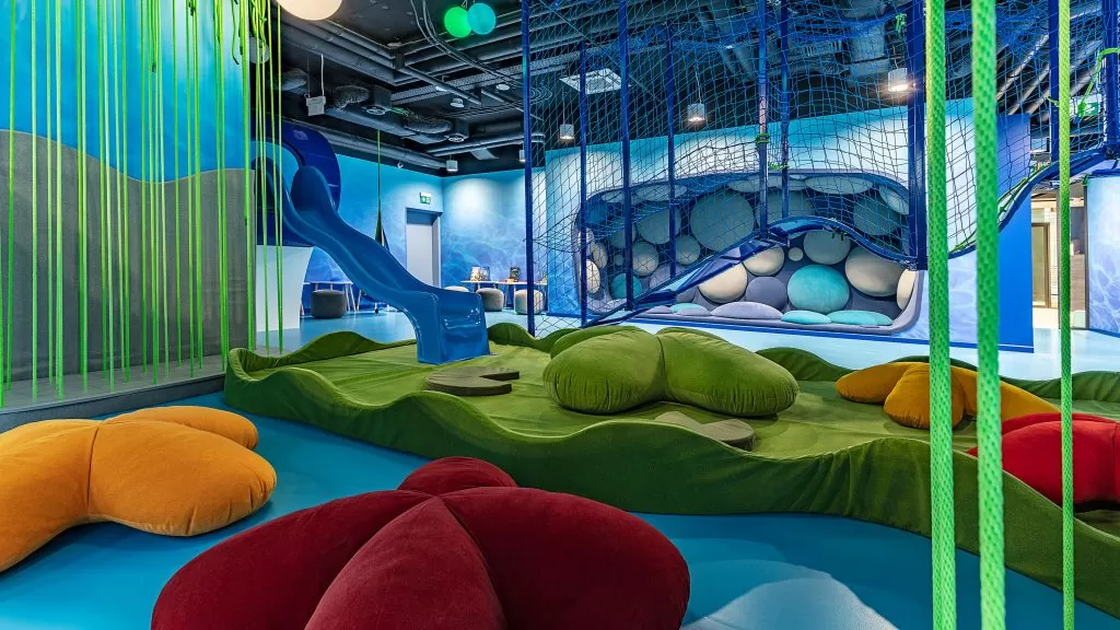 Na dzieci i ich rodziców czeka wiele atrakcji. Zabawy w Kids Room w łodzi podwodnej wypełnionej kulkami, otoczonej zjeżdżalniami i mostami. Integracja sensoryczna pokoju zachęca do badania podmorskiego świata, malowania kredami, czy ukrycia się wśród zabawek kreatywnych.